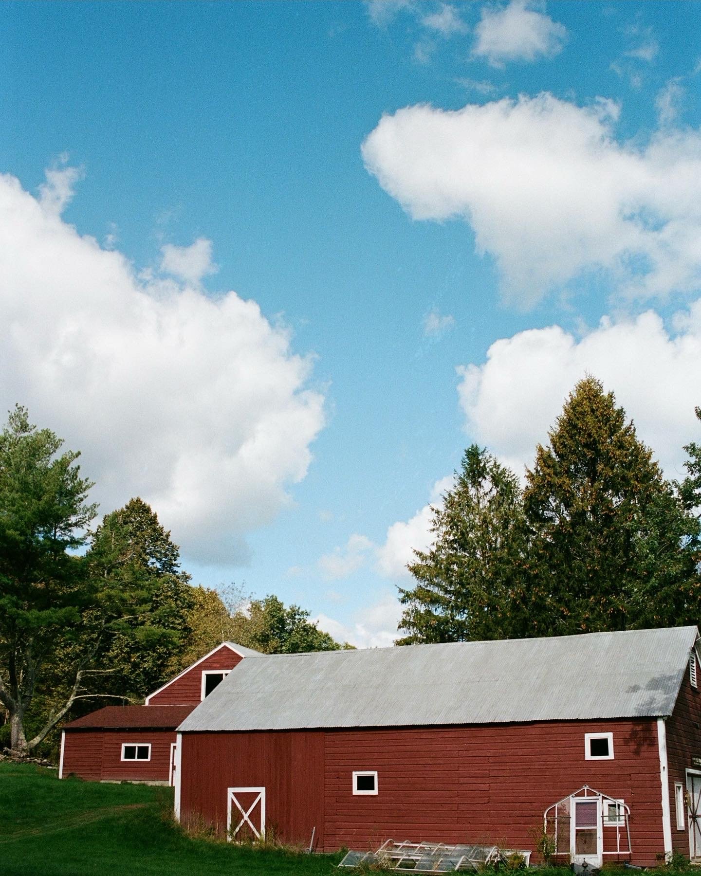 Red barn framed by green trees and open sky photographed by Seattle fine art photographer Ashley Brooke Twomey View fullsize